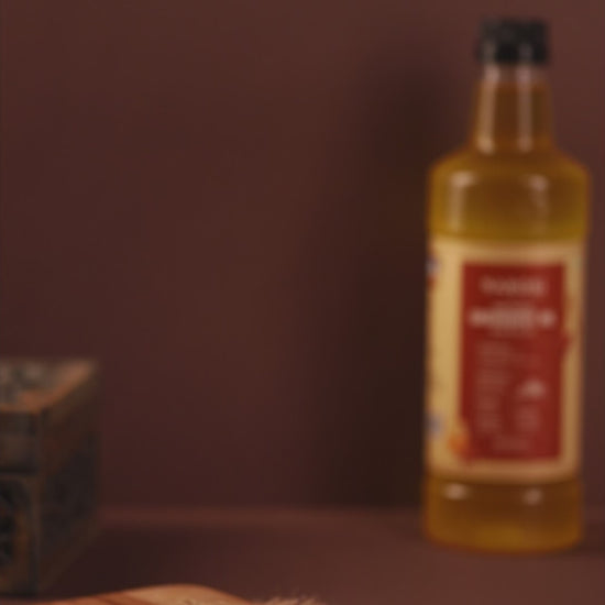Extracted from peanuts of Rajasthan, Groundnut cold-pressed oil is raw, unrefined, and traditionally extracted from a wooden crusher. Our groundnut oil journey starts with sourcing the seeds from farms in Sikar, Rajasthan, and then, using wooden churners (kolhu) to extract the oil. It’s the most natural, ancient way of oil extraction, the entire process is completely chemical or preservative-free, giving you only the purest & most fragrant groundnut oil.